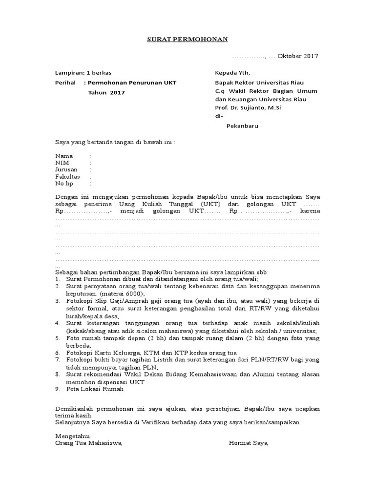 Surat Permohonan Pernyataan Dan Surat Tanggungan Orangtua Untuk Revisi Ukt 2017 Pdf